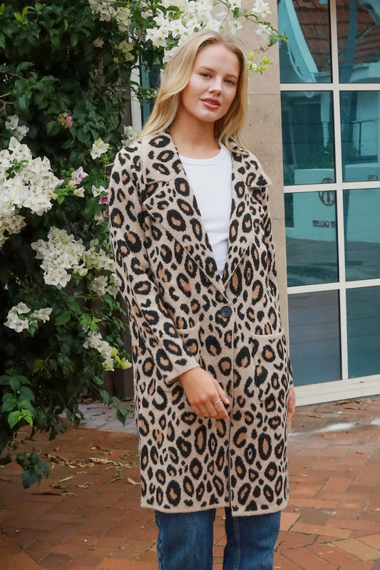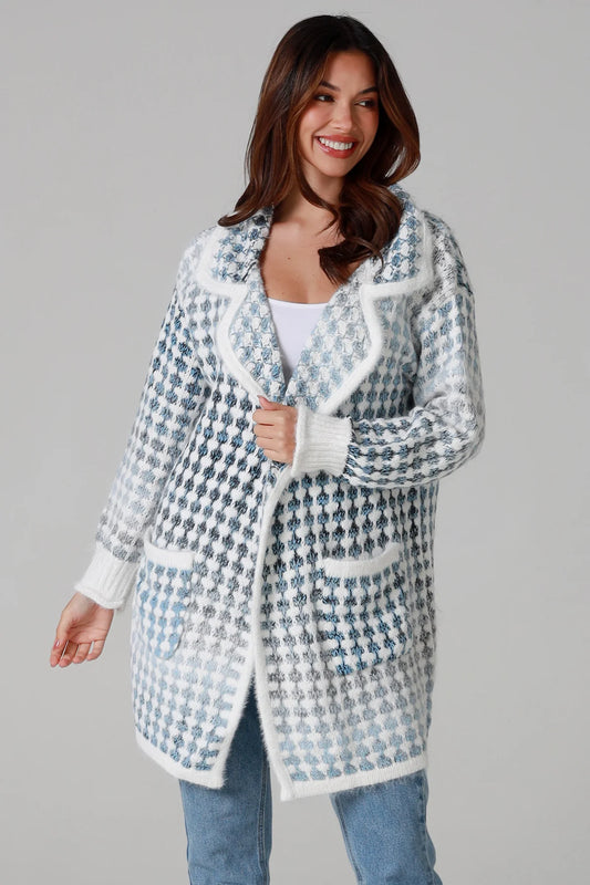 Houndstooth Knit Cardigan – Sky Blue & Cream
